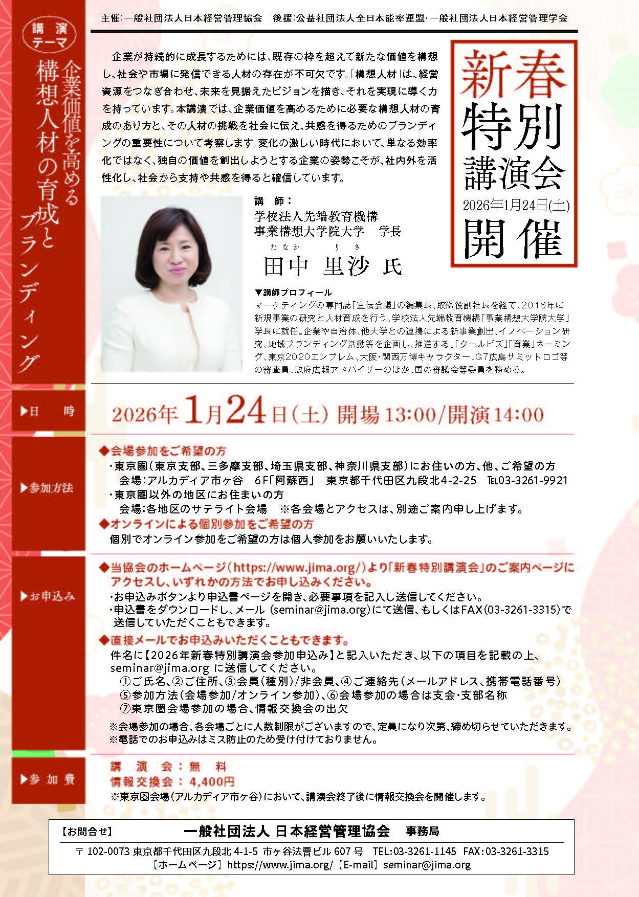 新春特別講演会を開催いたします。是非、ご参加ください。